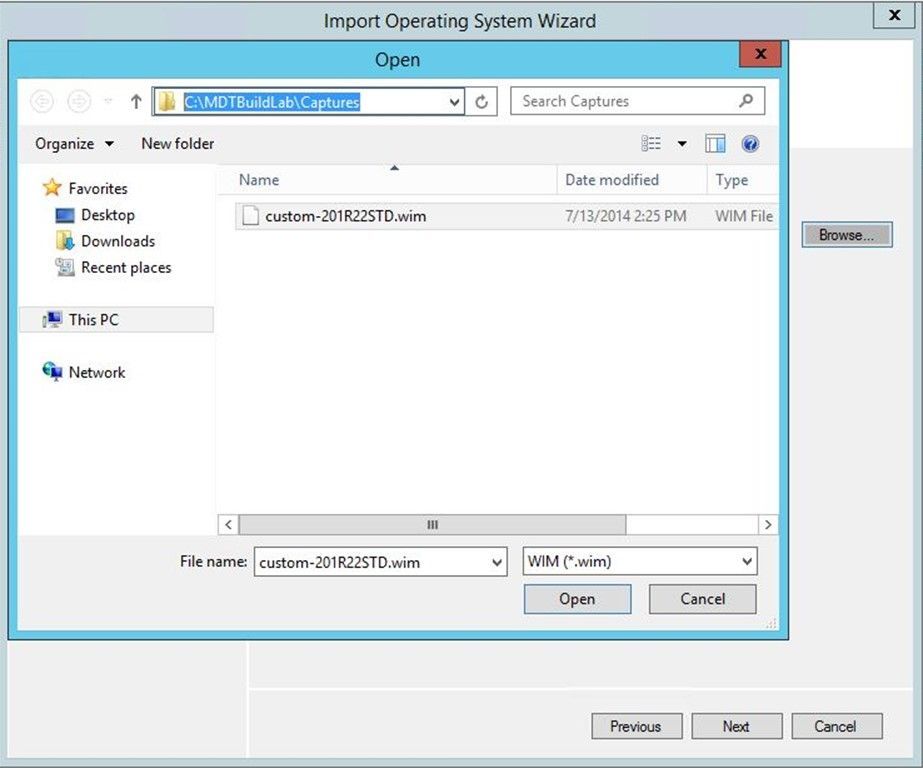 Browse out to the WIM you just captured – note the path for where the WIM gets copied to during the capture - …\MDTBuildlab\Captures: