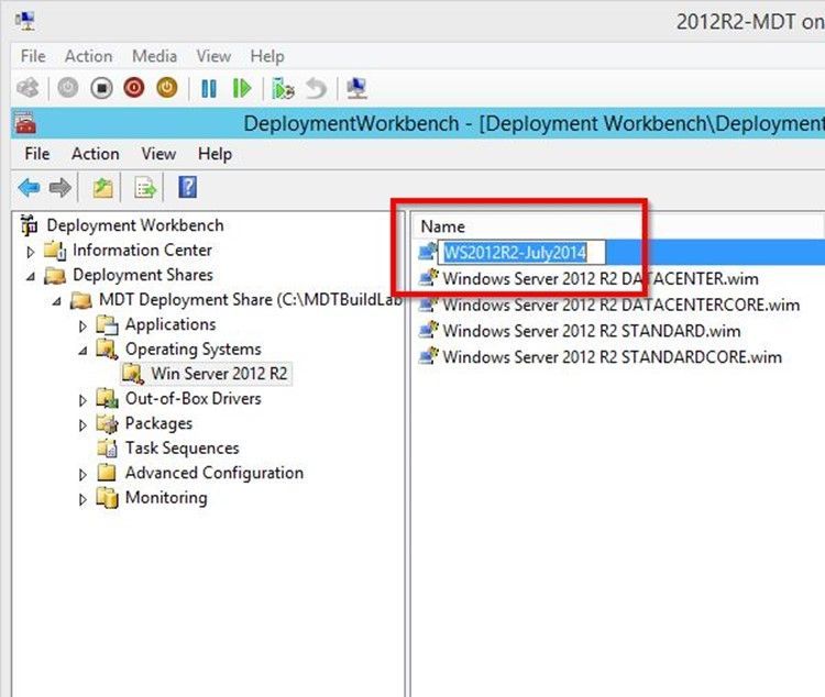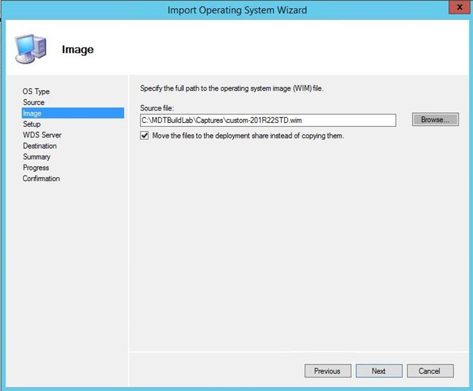 After the customized build has been captured and the WIM file has been copied back to the MDT system, it needs to be moved around within MDT: