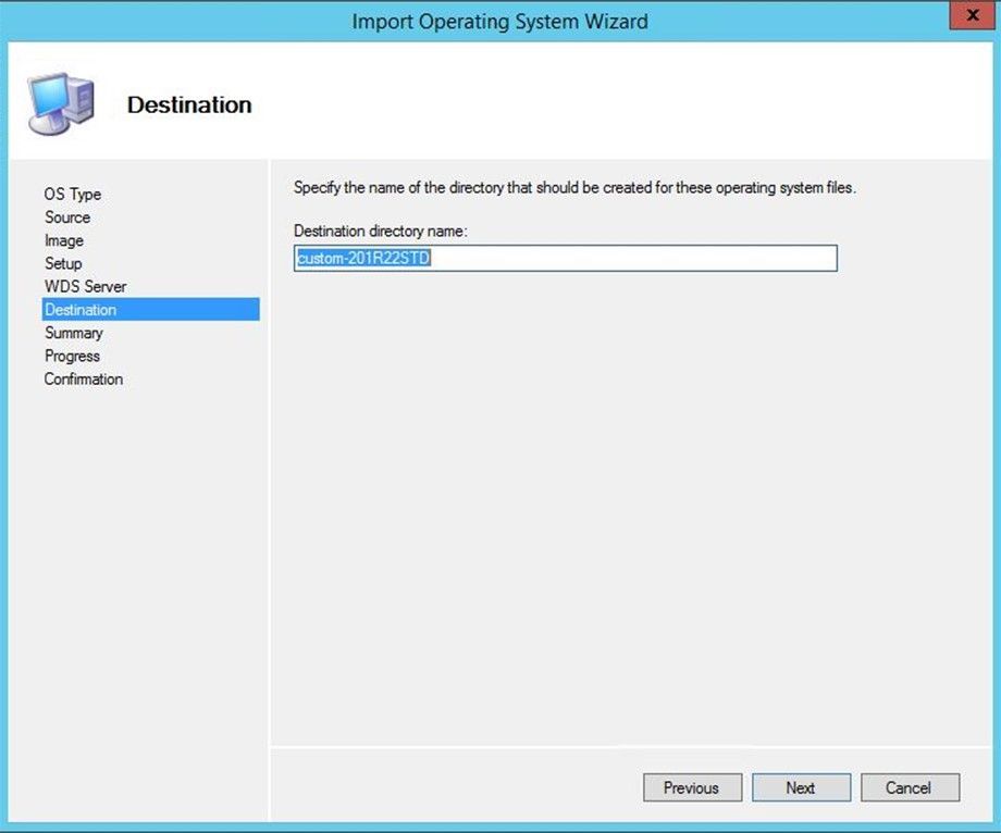 Enter a name for the new sub-directory which will house the WIM: