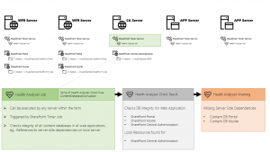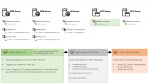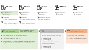 All servers in a SharePoint farm run the SharePoint Timer Service . This service makes all farm servers (no matter which role they have) randomly pick timer jobs out of a pool of jobs that are due to be executed. Health Analyzer jobs are triggered by those kind of timer jobs.