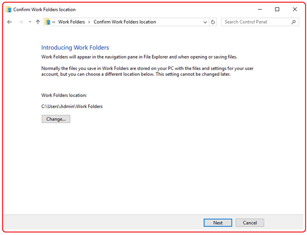 We enter the Application Proxy External URL into the Work Folders URL: