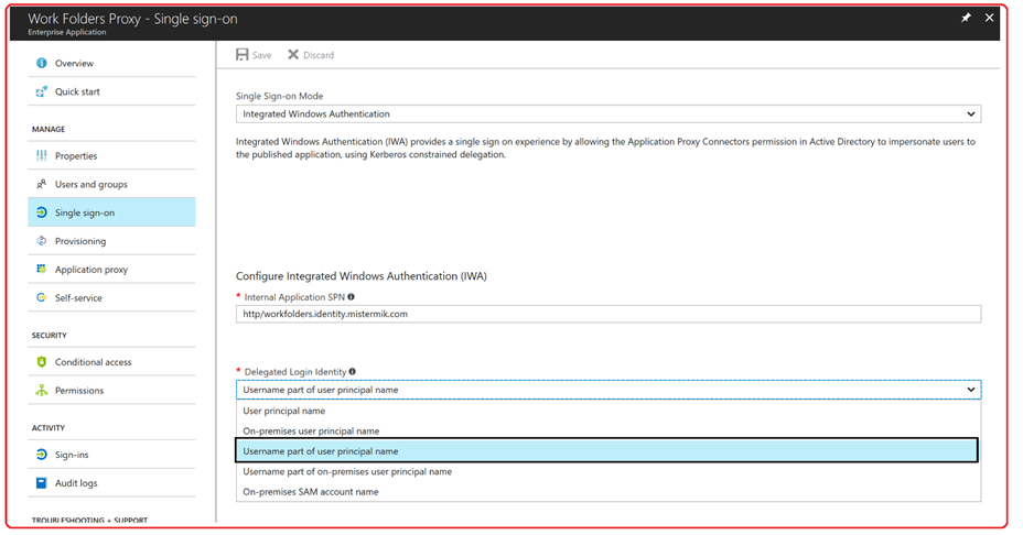 AAD-Application Proxy has a few of options regarding which identity should be used when we attempt the KCD. • On prem UPN (e.g. when customers used the alternate login ID) option in Sync and so the on prem UPN is different than the cloud one