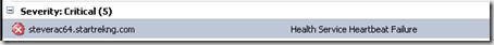 With all of this in place, I stop the ‘System Center Management’ service (formerly knows as the OpsMgr Health Service in RTM and SP1) and wait for my agent to go into a grey state. Now when I inspect the alerts pane, I see a heartbeat failure alert – just as I expect.
