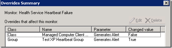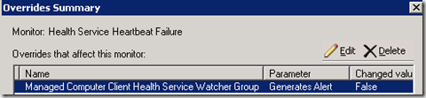 If we look at this monitor, specifically the override summary, we note something interesting – there is an override in place by default that will prevent any agents on Workstations from generating the failed heartbeat alert.