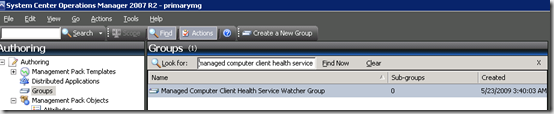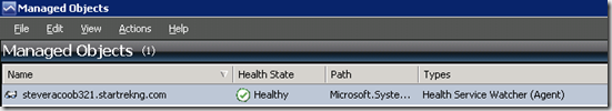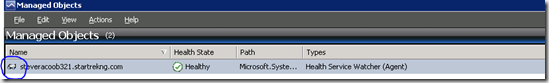 The most important thing here – note the icon circled above. The object contained in this group is NOT a standard computer object. Heartbeat failure detection is the job of a special class of objects called ‘health service watcher’ objects. Thats what the object in the group is – noted by the glasses.