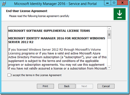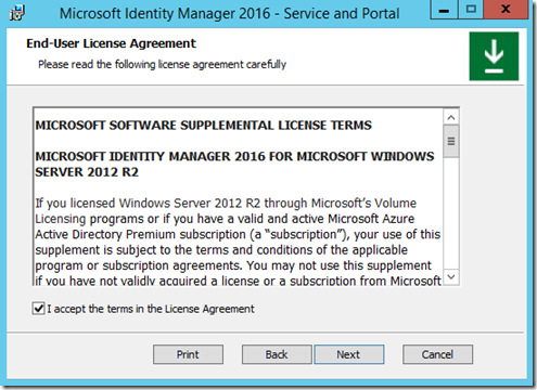 In this post we will walk through an upgrade / Install scenario of MIM 2016 to MIM 2016 SP1, note this is not an in place upgrade and it requires the current version to either be uninstalled first if installing on the same server that your current version of MIM 2016 is installed on or installing in a “side by side” scenario. In a “side by side” install scenario you would perform the install of Microsoft Identity Manager 2016 SP1 components on “new” servers but you would point to the existing Synchronization Service Database and FIMService Database.