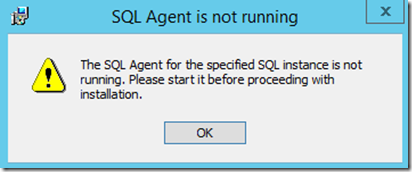 If the following message appears, start the SQL Agent and click on OK.