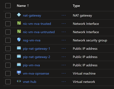 - Network Security Group (NSG): attached to the untrusted subnet, with rules allowing traffic to the VPN, OPNsense website and to the internet.