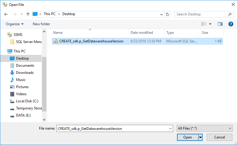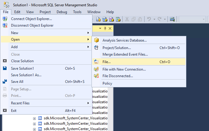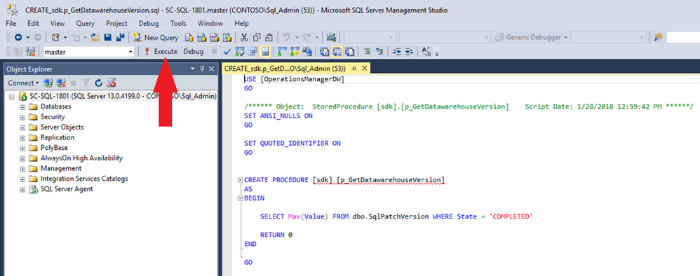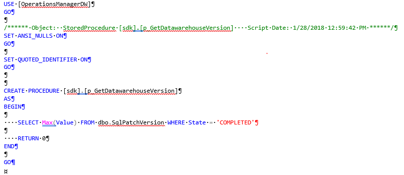 Download the file attached to this post (taken from a new SCOM 1801 Installation) and save it locally on the SQL Server (i.e. in the C:\Temp folder or on the desktop). The file contains the following code: