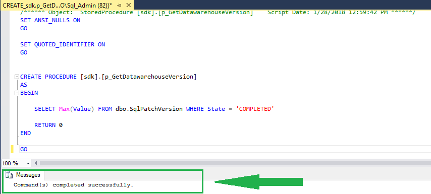 Stored Procedures - Scroll down, and search for the p_GetDatawarehouseVersion stored procedure