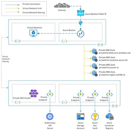 The objective of this tutorial is to create a private environment for AKS, ACR and a JumpBox VM. AKS and ACR will be accessible only through Private Endpoint.