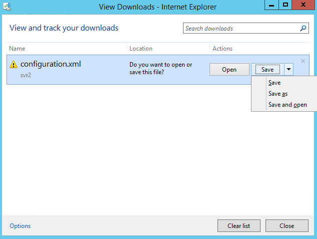 - Select the Save As Option, Selecting the Save As option allows you to change the default name of configuration.xml to something else usually something more user friendly. Its also important to not that the RCDC Back Up Script located on this Blog saves all RCDC Files will the correct Display Name of each RCDC to make it easy to locate the File you wish to modify.