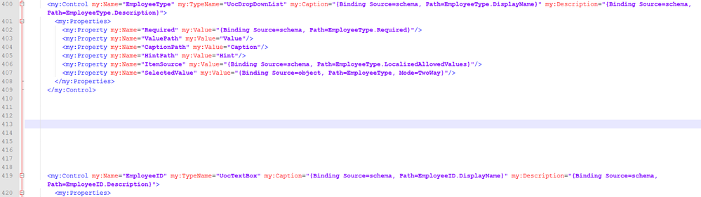 - In the space between the 2 attribute sections copy and paste the Employee Type Attribute section, it is easier to begin with a format that we know is working.