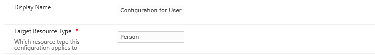 - Within this window you could change the Display Name and Target Resource Type if desired but i would strongly not recommending changing the Target Resource Type section which essentially binds this RCDC to the User resource with in the FIM Portal. It may also be important to note that you should only ever have 1 RCDC set for each resource type and action. (Another words do not change the following 2 options)
