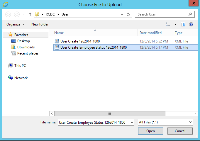 - In This example I named the new file " User Create_Employee Status 1262014_1800"