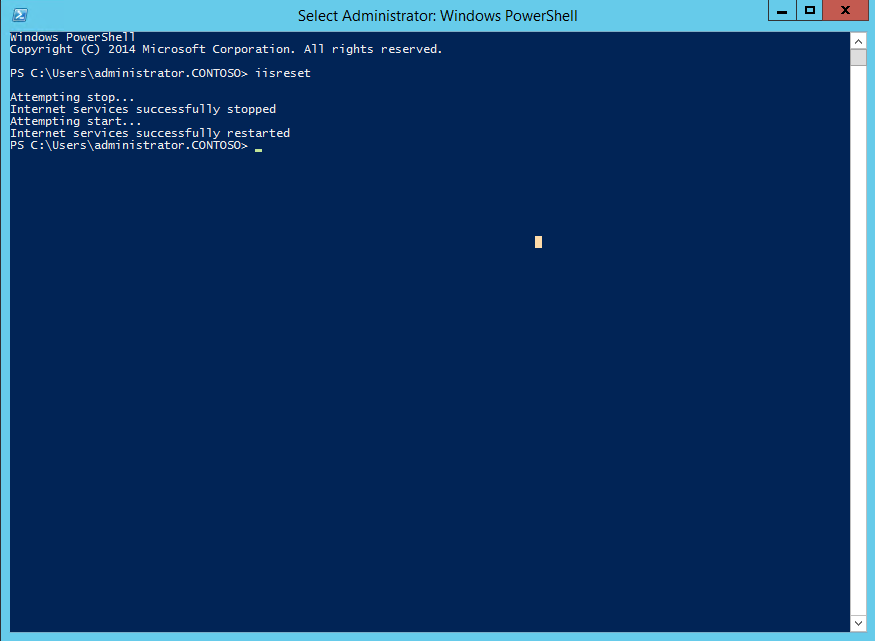 - Before we continue open up PowerShell or a command prompt as an Admin, Type IISRESET