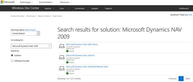 The capability to report compatibility by Windows release and product version is particularly helpful for AV and Security software. Closing, this is a great tool for quick one off questions, but it isn't feasible for checking hundreds or thousands of applications. If you need that capability, our Windows Analytics service is probably a better choice. It's a much bigger tool that automates the hard work of application discovery and creating reports of known application compatibility issues. You can read more about that here: https://www.microsoft.com/en-us/WindowsForBusiness/windows-analytics