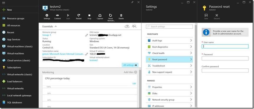 I don’t know about you, but sometimes my memory fails me and I forget the username/password I set on my Azure virtual machines. If this is a “classic” virtual machine, the portal provides a nice UI that allows us to reset this username and password.