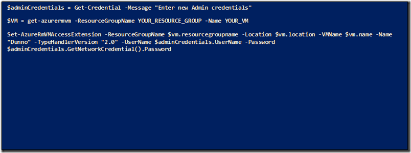 What is even more frustrating is that the Azure documentation tells us how to reset the admin username and password for classic VMs, but not ARM (Azure Resource Manager) deployed VMs.