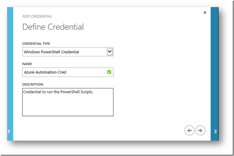 5. For the “Credential Type”, choose “Windows PowerShell Credential”. Give it a name and description.