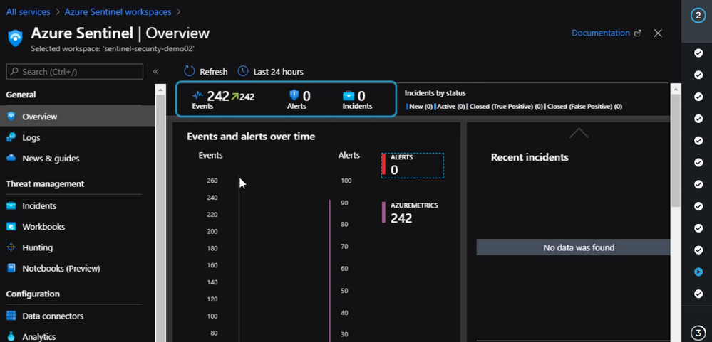 Now if we check the Azure Sentinel workspace page, we will see something like the following.