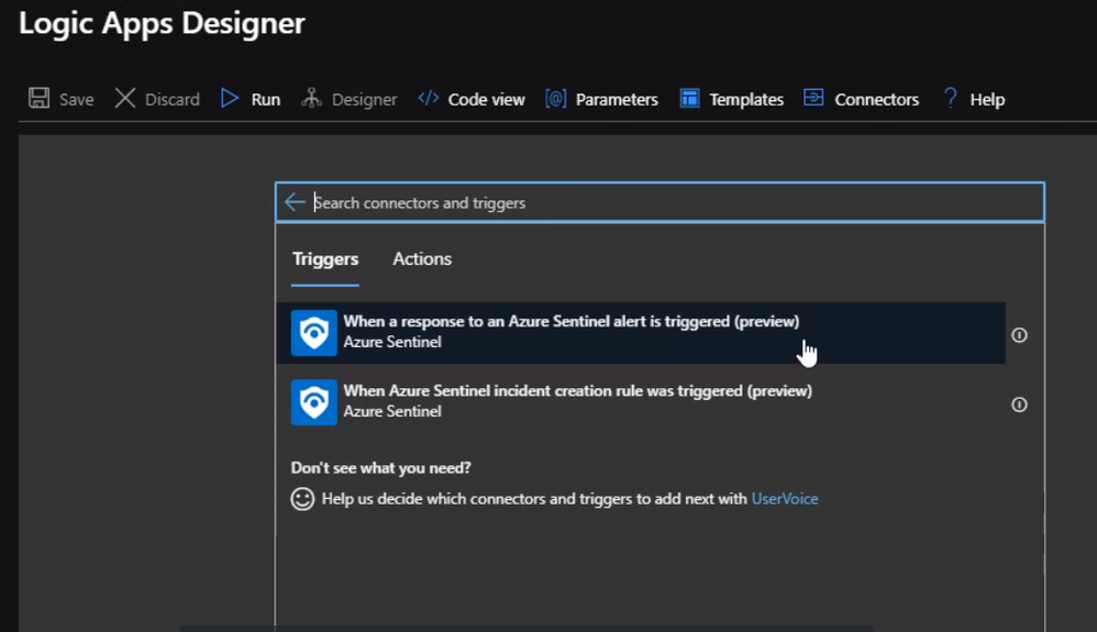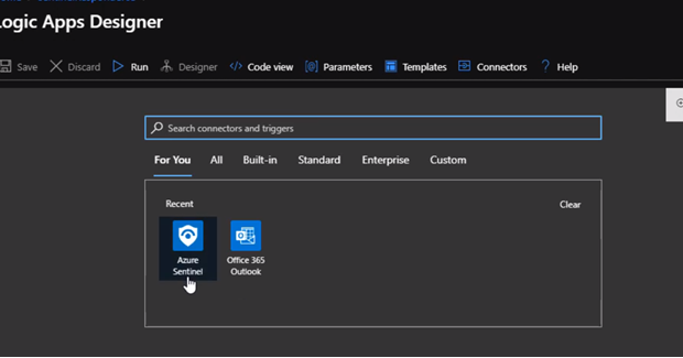 The only difference between an ordinary logic, app, and responder is the first action. The first action here should be Azure sentinel. Also if it is not showing, we can simply search for it.