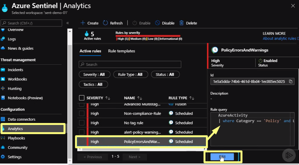 We start by clicking analytics and select the alert we click Edit