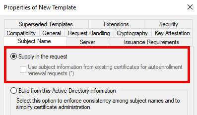 - Don’t allow enrollee-supplied subjects without requiring manager approval for the certificate request.