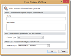 I got tapped to help with an internal project to upgrade a couple of custom site templates from SharePoint 2010 to SharePoint 2013. No big deal right? I'll just create a new site in SP2010 off of the original template, content DB attach it to 2013, and then export the template again. Well, it looks like I found a couple hiccups in the RTM upgrade process, that didn't let me do what I want with these templates. (The PG has them and is investigating) So, I'm stuck manually recreating them. One of the big pieces of the site is a workflow for tracking changes and states of items in a list. (Warning, I RARELY create SPD workflows.) I created a new workflow and starting clicking away. I got about 20 steps in, and couldn't get SharePoint Designer 2013 to create a "Collect Data" action. After doing some digging, it looks like there is a big list of workflow actions that were part of SharePoint 2010 that are no longer part of SharePoint 2013. The list is pasted below, along with a source link. Fear not though. SharePoint 2013 still allows users to create workflows on the SharePoint 2010 platform. If you need these legacy actions, make sure you select the "Platform Type" as SharePoint 2010 when you create the workflow. You cannot change the platform type once the workflow is created. I found this out the hard way.
