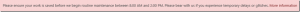 .MaintenanceEndDate - Maintenance end date, provides message with date and time that maintenance will end. Format (MM/DD/YYYY HH:MM:SS AM|PM)