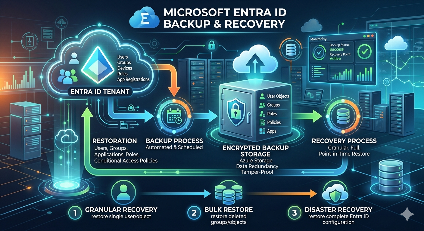 Microsoft Entra ID Backup & Recovery provides a native, Microsoft‑managed capability to restore critical identity configurations after accidental changes or security incidents. It helps organizations quickly return their Entra tenant to a known good state, reducing risk and recovery time