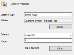 While this works, the question I pose, is this the best solution? This would give you all the workstation operating systems records, and we can do something very similar to give us all the server clients as well. How do you separate out your domain controllers? I don’t want to write a sub-select query or query other properties having to use the % and is like operator. The simplest, most efficient way I have found is using an attribute called ProductType.