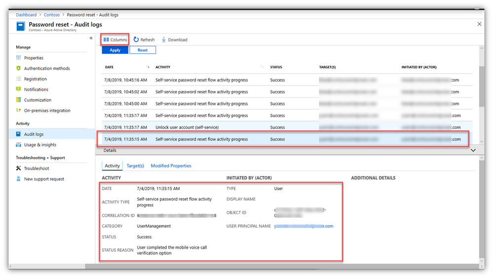 - SSPR activities are exposed in the ‘all up’ Azure AD audit logs but here’s a tip (which applies to many other spots in the AAD and Intune portal ‘blades’):