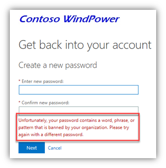 - Here is the end-user error messaging and portal audit entry if we encounter one of your own custom banned passwords (if they’re in use):