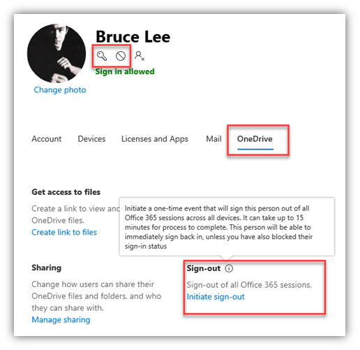 - Initiate a sign-out (from One Drive section of the user settings in the O365 Portal)