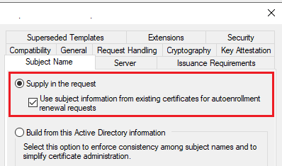 Either choose Build from this Active Directory information or choose Supply in the request + key-based renewal.