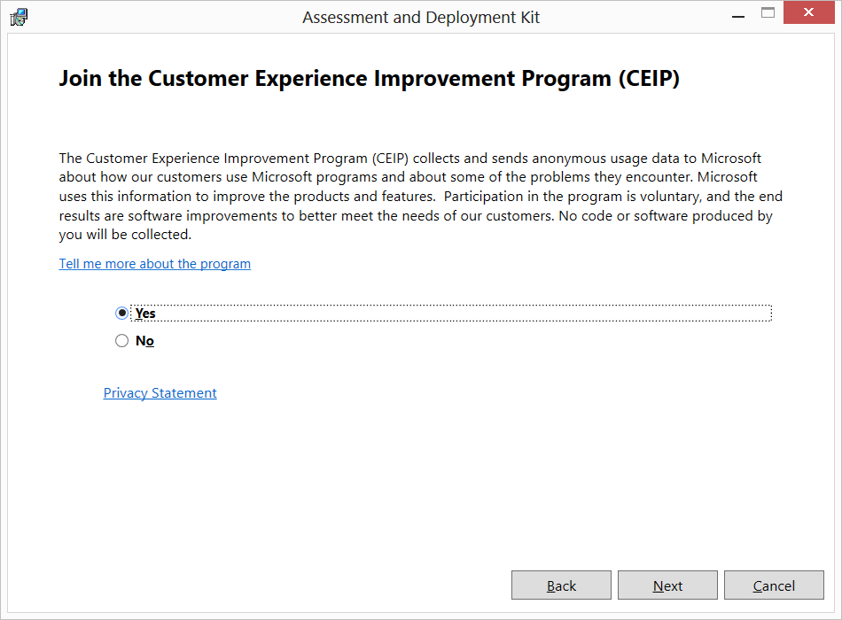 Select Yes to Join the CEIP:
