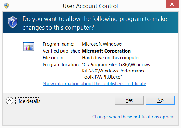 The tracing itself does require administrative privileges, so don’t be surprised if you see a UAC prompt: