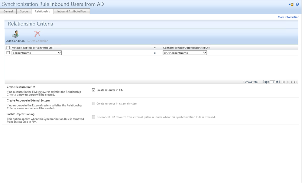 On the Relationship Tab you need to define the Relationship which is also know as the Join Logic for objects in the Connector Space of the Connected MA to be synchronized with the objects that already exist in the Metaverse. This is a crucial step to avoid duplicate objects.