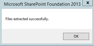 • Once you click on enter and execute the Command after a few seconds you should receive the following popup indicating the files have been extracted.