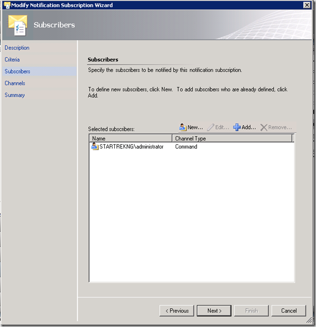 The script is called through the subscription system so the first thing I need is a command channel that will execute the script. There are a few different ways that a command channel can be configured but I like to call powershell directly as shown.