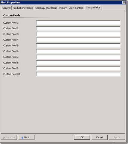 Alerts in OpsMgr have lots of good information on them already – but wouldn’t it be cool if you could add your own custom information to the custom alert fields of the alert? There are lots of reasons why this might be useful – you might just want to add extra information to an alert – or extra context, you might want to use the custom field data as criteria for forwarding alerts to another ticketing system or you might want to use the custom alert data to decide notification routing.
