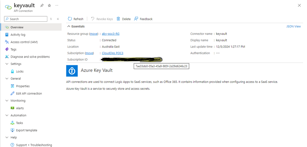 - Do the same steps for the keyvault API connection.