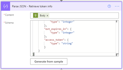 The Parse JSON step will parse all the properties in the returned token request.