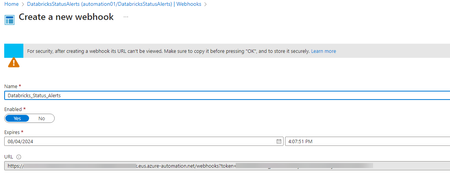 This guide walks you through the process of setting up and utilizing webhooks to receive Databricks status alerts, process them using Azure Automation Runbook, and trigger notifications...