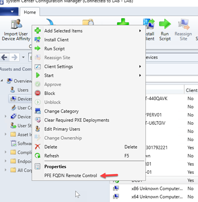 Hello everyone, Jonathan Warnken here. I am a Premier Field Engineer (PFE) for Microsoft. I primarily support Configuration Manager and today I want to talk about creating a custom console extension to allow the use of a Fully Qualified Domain Name (FQDN) when starting a remote-control session. If you work in a multi domain environment or need to support direct access clients you will quickly find that one of the challenges with Configuration Manager is that when it starts a remote control session it defaults to the Client name which generally matches the Net Bios name of the system. I was recently challenged by a customer wanting to simplify the management of clients connected via direct access. They had correctly configured the environment to support managing out to these devices and could complete all connected except starting remote control via the console. Remote control would work but the initial connection via the net bios name would fail and the user would need to enter the FQDN to allow the connection to complete successfully.