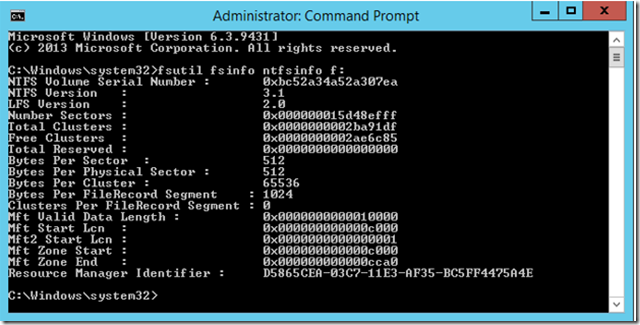 fsutil fsinfo ntfsinfo F: