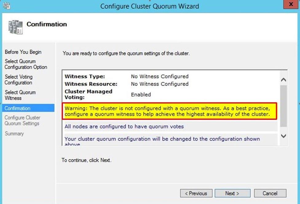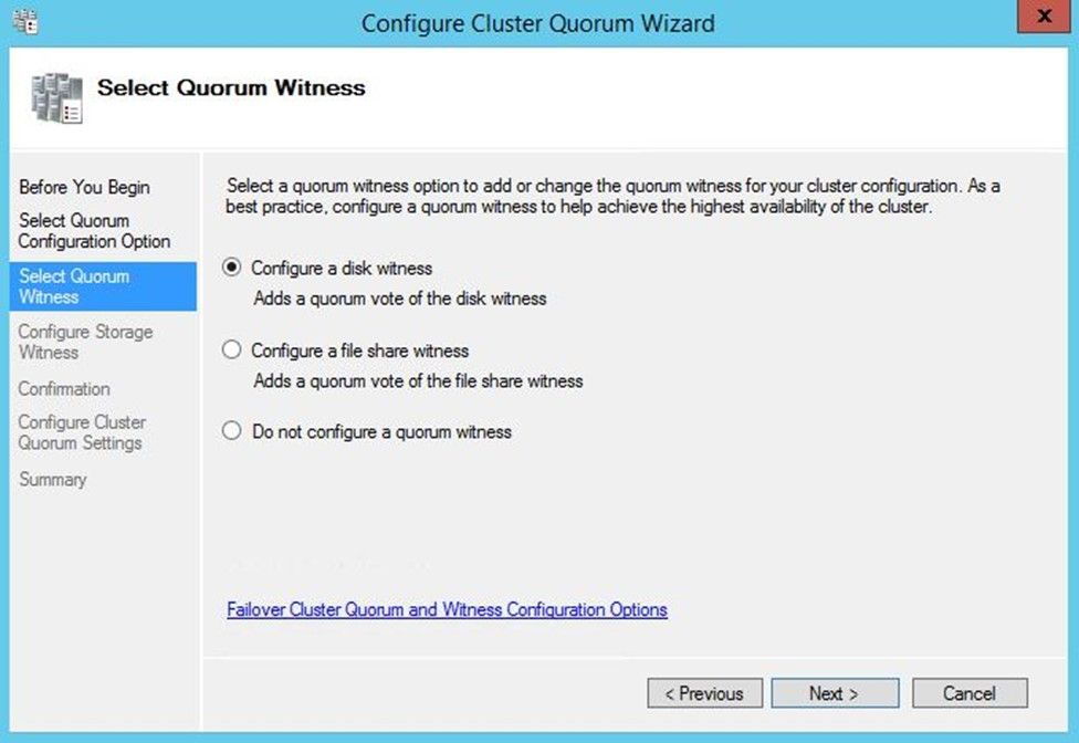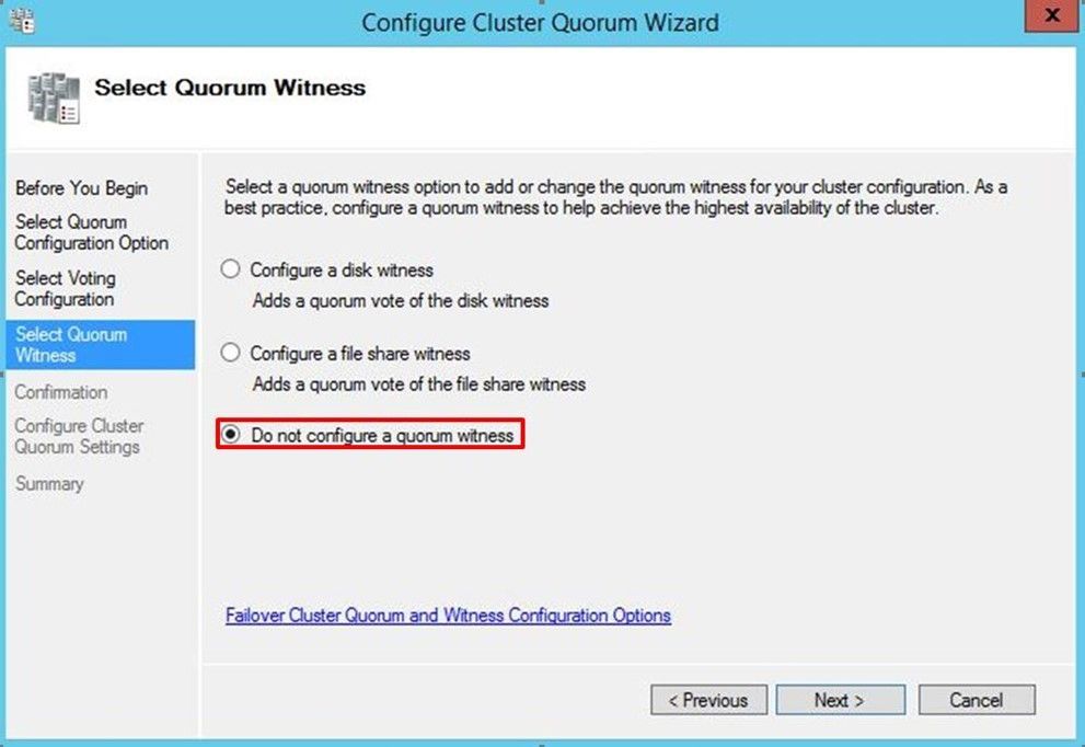 Note: If you wish to use the risk mitigation option of an FSW choose Configure A File Share Witness instead and follow the instructions in that path.