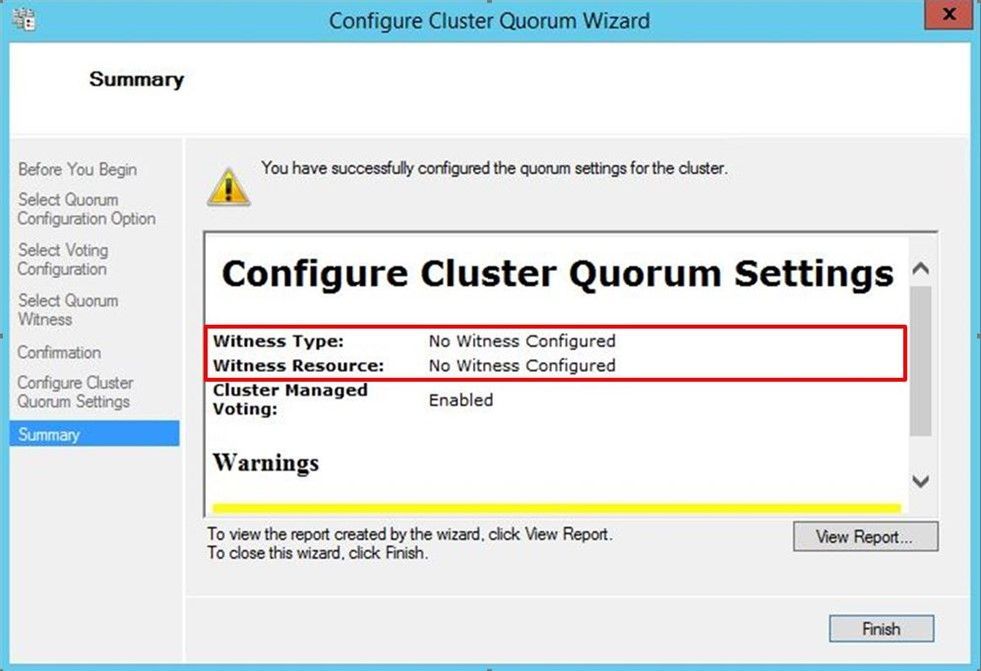 STEP 16: Verify the Disk Witness has been configured successfully when the wizard finishes