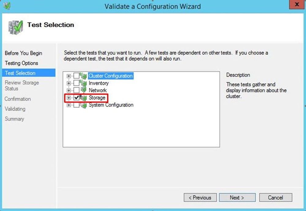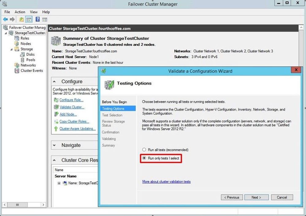 - In the Validate a Configuration Wizard choose Run Only The Tests I Select